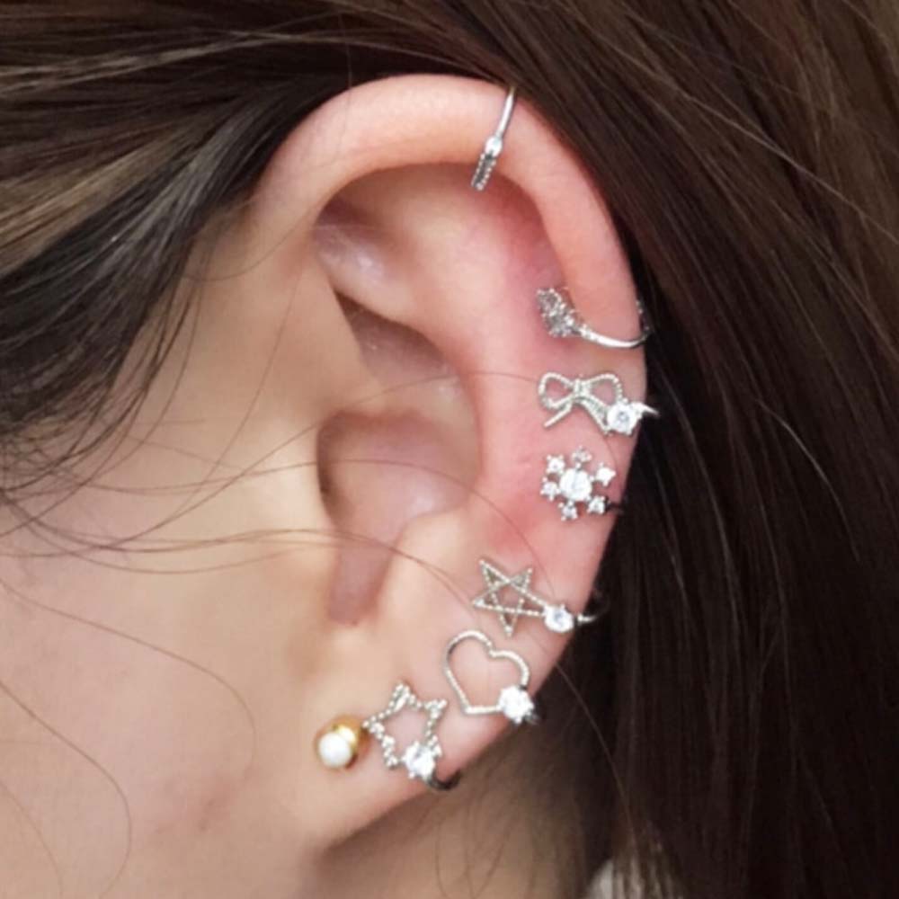 スモールジルコニアイヤーカフ 1個販売 メンズ レディース イヤリング 挟む はさむ ノンホールピアス イヤークリップ 耳 軟骨 プレゼント ギフト 真珠 リボン クリスタル 星 スター ハート 花 フラワー サクラ 雪の結晶 スノー 棒 スティック 四角 スクエア パール