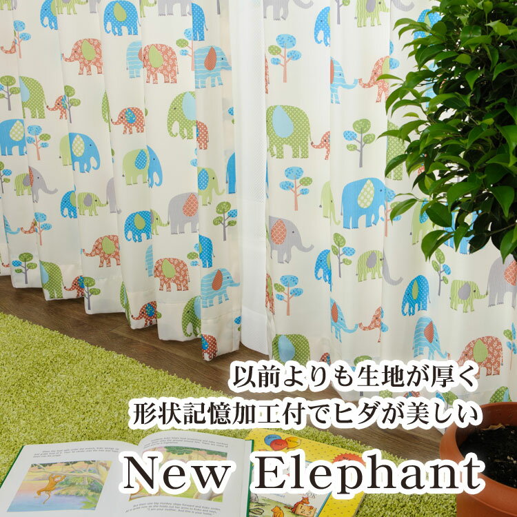 【商品名】 エレファント(グリーン) 【縫 製】 中国 【製品仕様】 形状記憶加工付カーテン2枚とレース2枚の計4枚のセット。