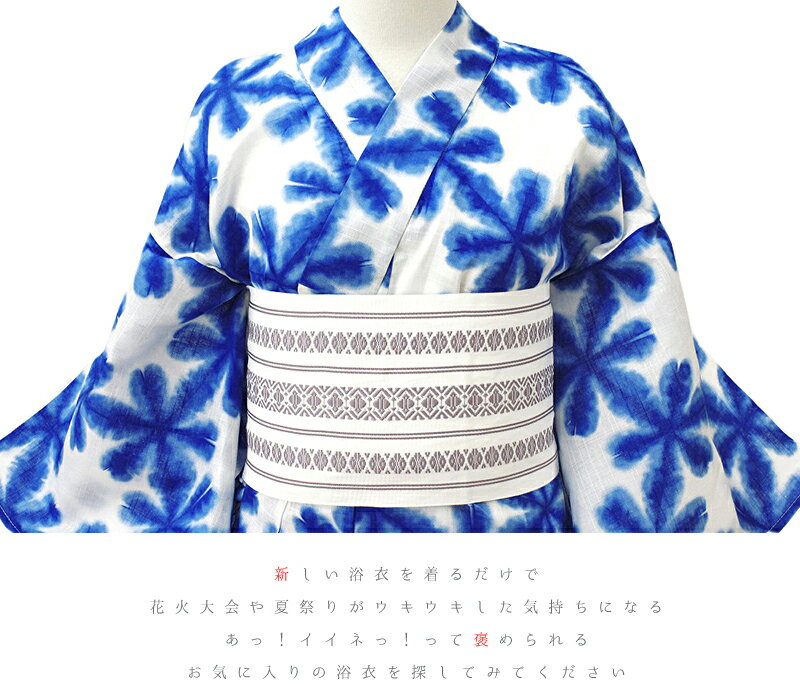 浴衣 レディース フリーサイズ 単品 白地 白 オフホワイト 青 水色 雪花 夏祭り 花火大会 シンプル 爽やか エレガント 可愛い 大人可愛い 大人 オシャレ No.11-0100t サイズ表 フリーサイズ ≪適応身長152〜167cm≫ 長さは着用時に調整可能です。